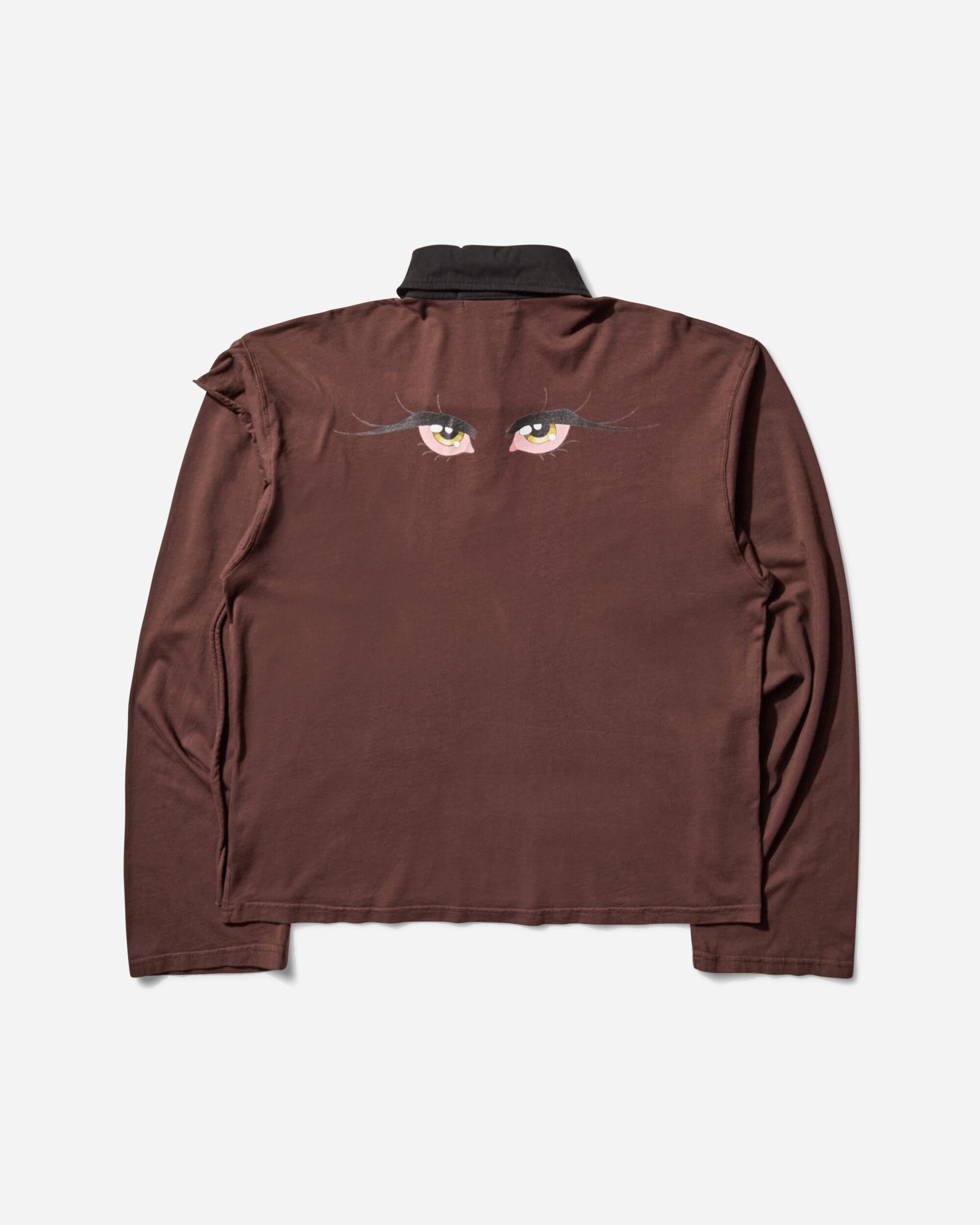 Ottolinger, the Berlin-based fashion brand founded by Swiss designers Christa Bösch and Cosima Gadient, changed things up this season. The brand commissioned artist Julien Ceccaldi to work on a series of illustrations for their collection. Boxy fit polo with graphic on the front and back with deconstructed styling on the front.