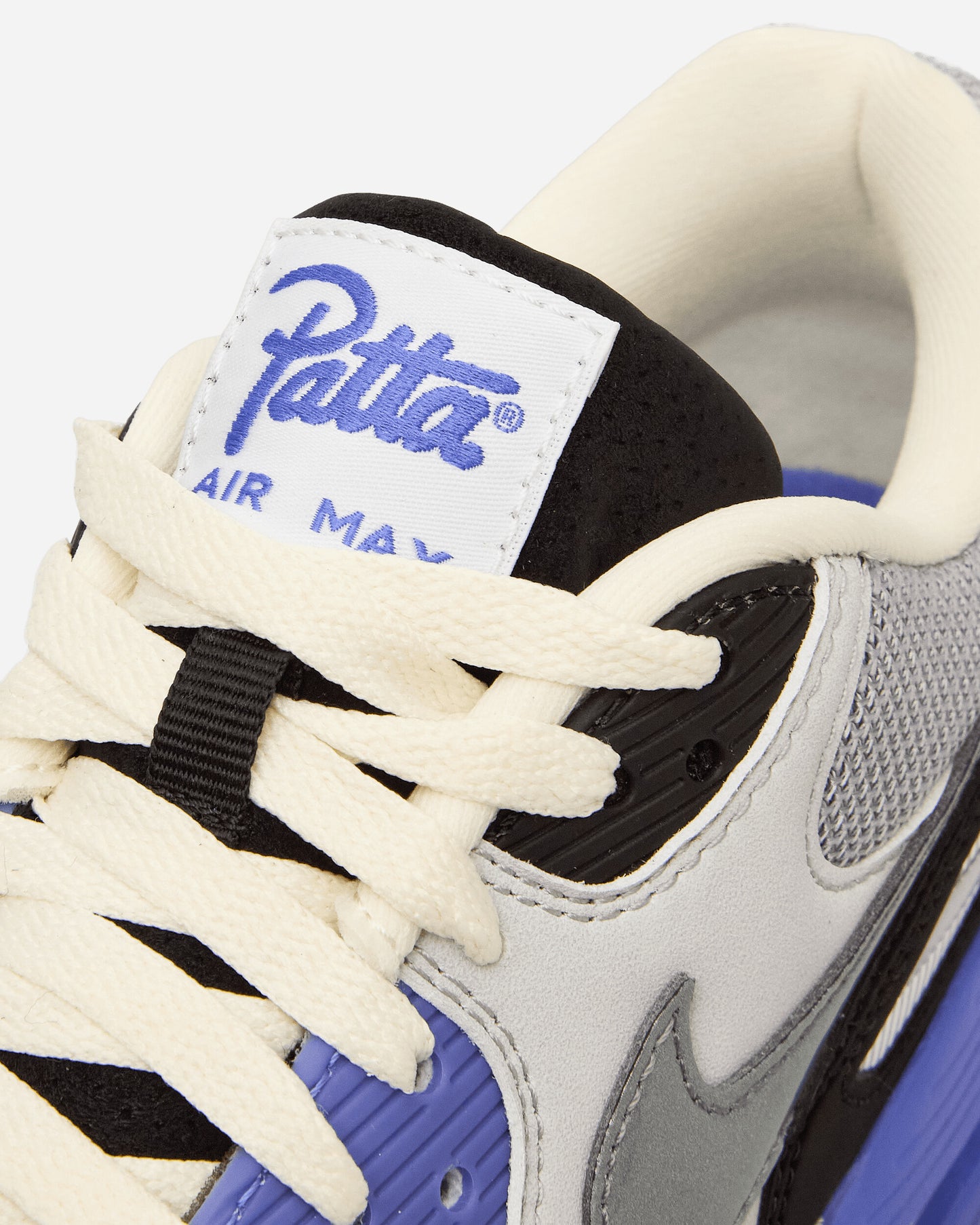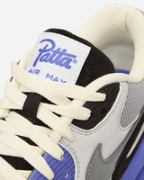 Nike and Patta reunite to create another fave. In 2021, the Amsterdam-based brand collaborated with Nike to bring the wavy aesthetic to the famed Air Max 1. This time around, the iconic Air Max 90 gets the wavy mudguard treatment. The richly layered design features a Particle Grey upper with bold Sapphire accents. The smooth black mudguard ripples around the shoe, highlighting the motion of the design.