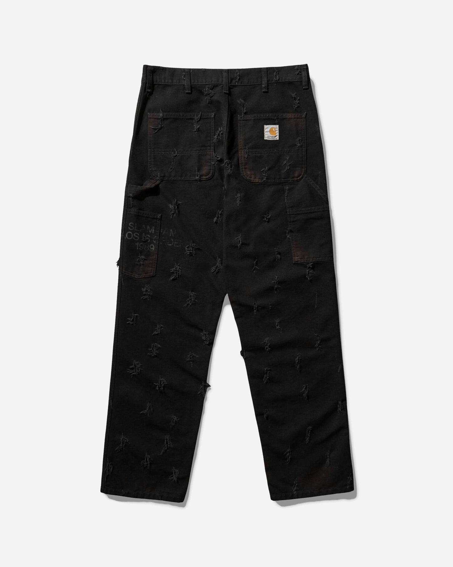 Slam Jam and Carhartt WIP, longstanding friends and partners, join forces to reimagine core pieces that are dirty and cut. Working closely with Tintoria Emiliana, heritage techniques meet experimental takes in the clothes’ dying and cutting process. The iconic brown is overdyed in black, revealing its true colors through wear. Laser cuts make for a repetitive tear motif across the garments, while logos emerge through faded textiles as rough, black screenprints — ghostlike, almost worn into the fabric.