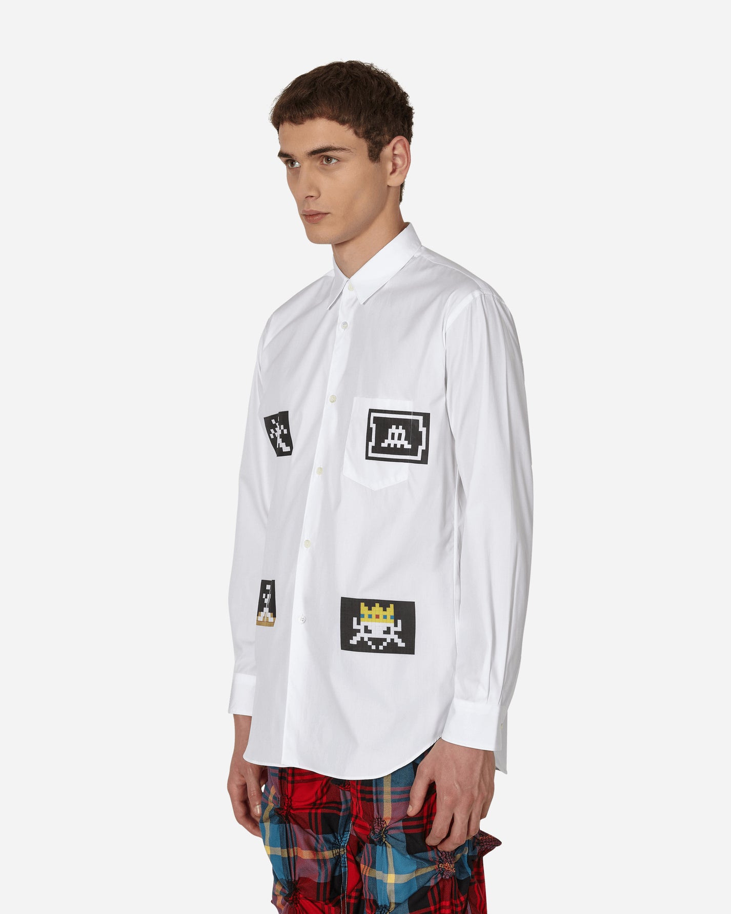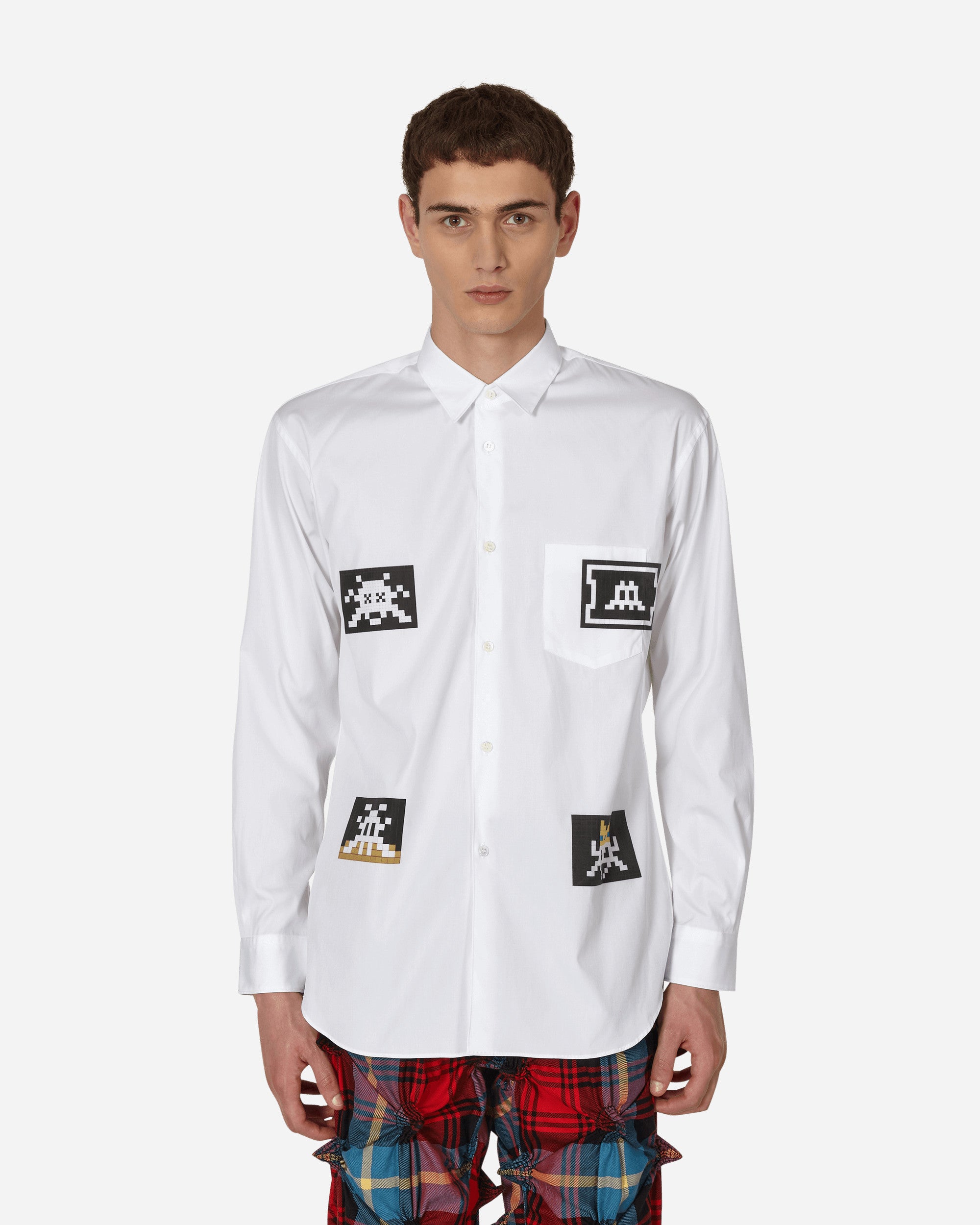 Comme Des Garçons Shirt x the Artist Invader cotton poplin shirt, featuring a digitally printed Invader artwork.