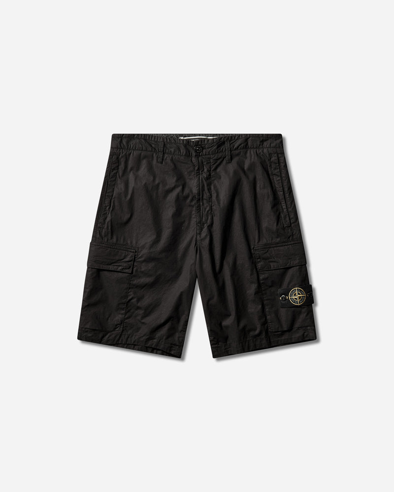 Cargo shorts in light stretch cotton tela, featuring hand pockets with concealed zip, cargo flap pockets, and a back snap pocket. Garment dyed.
