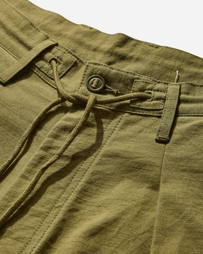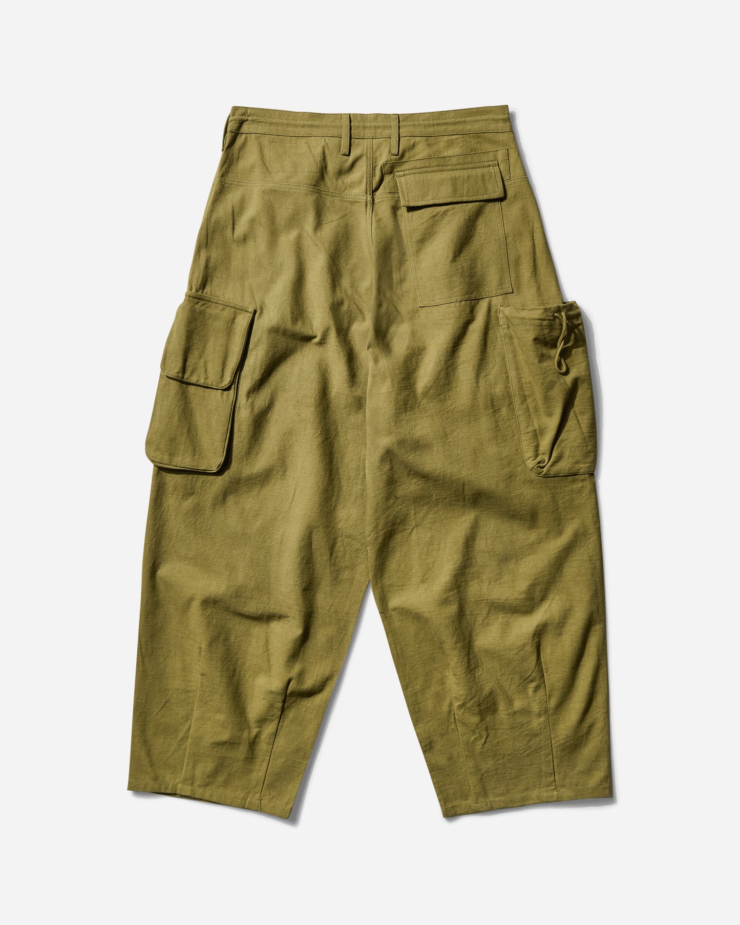 Oversized trousers with drawstring waist for extra comfort and the asymmetrical forager pocket system. Cut from 100% organic cotton slub for extra texture and dyed with non-polluting eco dyes.
