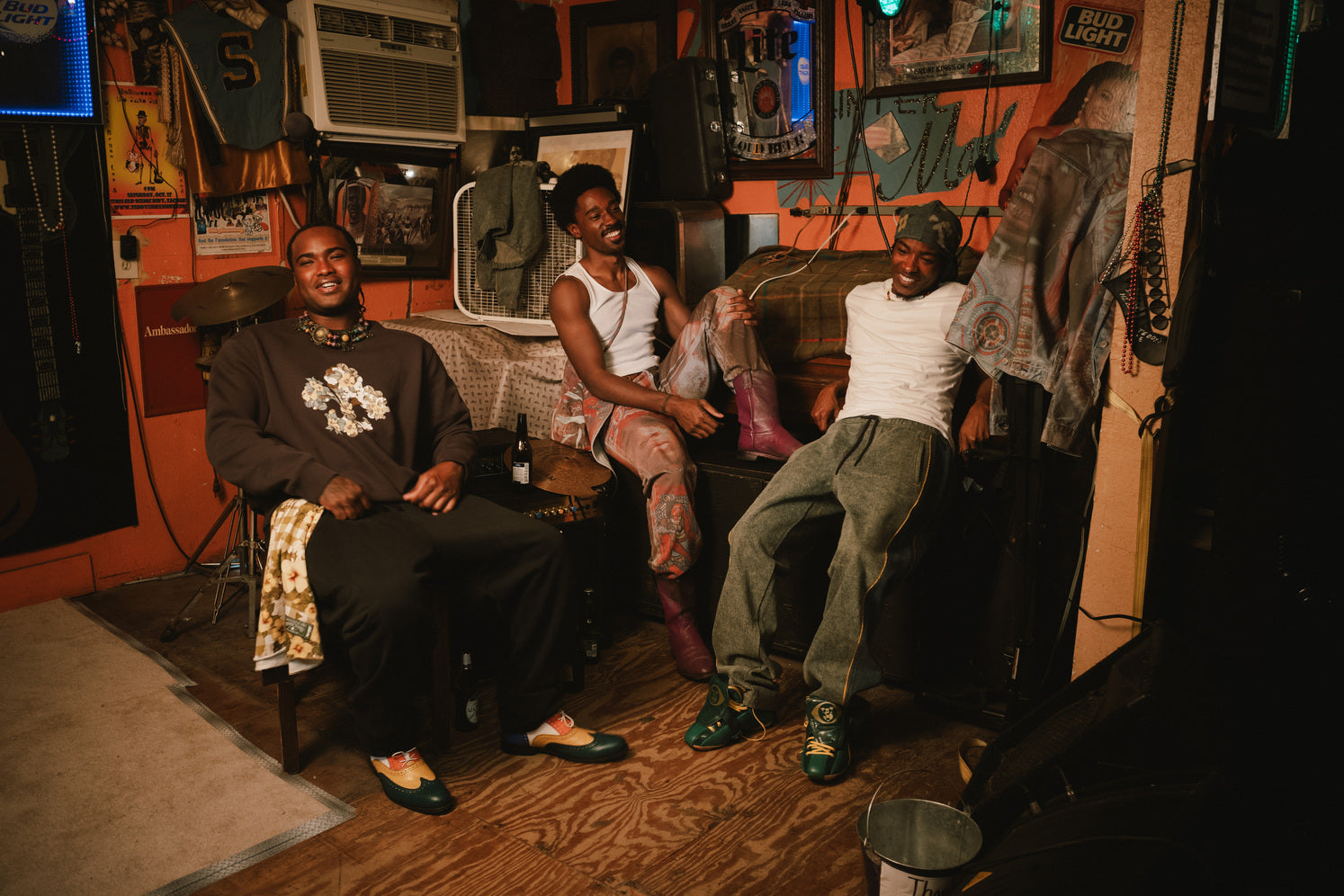 Photographic prints capture moments of ceremonial beauty, transposed onto garments like the Photo Trucker and 568™ Stay Loose Jeans. Each image is processed with deliberate imperfection, echoing the hand-built nature of Mardi Gras Indian suits—where no two are alike, and every detail matters.
